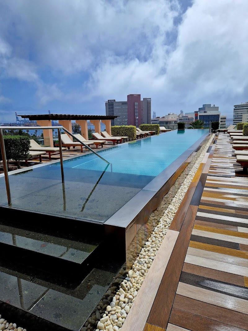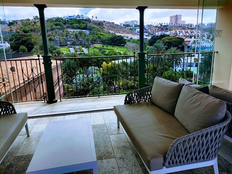 Un lujo poder tomarse aquí un cóctel de su extensa carta y preparados con maestría y mientras contemplar el espectáculo del paisaje. El jardín que rodea al hotel, lleno de palmeras y el enorme puerto de Las Palmas. Por la noche estará lleno de luces. Es relajante mirar hacia la isleta y ver rotar la luz del faro. El trato del personal es exquisito como corresponde a la categoría del lugar. No se debe ir a Las Palmas sin pasar por aquí.