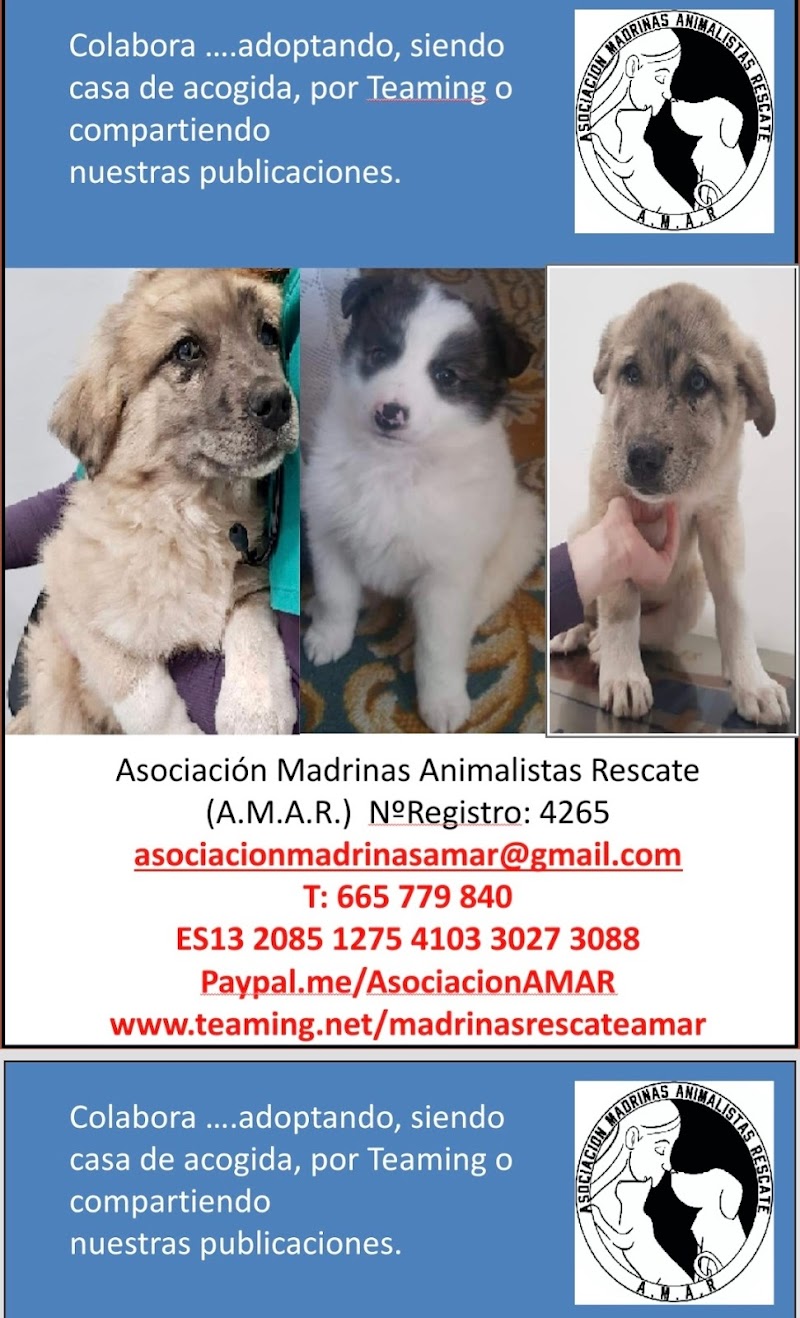 Que pena me da leer cierta reseña en contra de la protectora Madrinas Rescate AMAR...pero claro la perrita de la que hablan es monísima osea que todos la quieren ...cómo digo siempre hay animales de primera y se segunda. Yo fui casa de acogida y después de unos meses adoptante, y no tuve problemas al revés todo facilidades. Es muy fácil hablar a la ligera de una protectora con la que se ha tratado 5 días, lo difícil es seguir al pie de cañón después de muchos años de lucha y con centenares de animales adoptados a sus espaldas. De todas maneras es normal que no llueva a gusto de todos y que alguna persona no piense igual que yo, pero no veo yo que sea para poner una reseña de estas maneras, ya que Marisa lleva años haciendo la vida más feliz a animales y adoptantes.