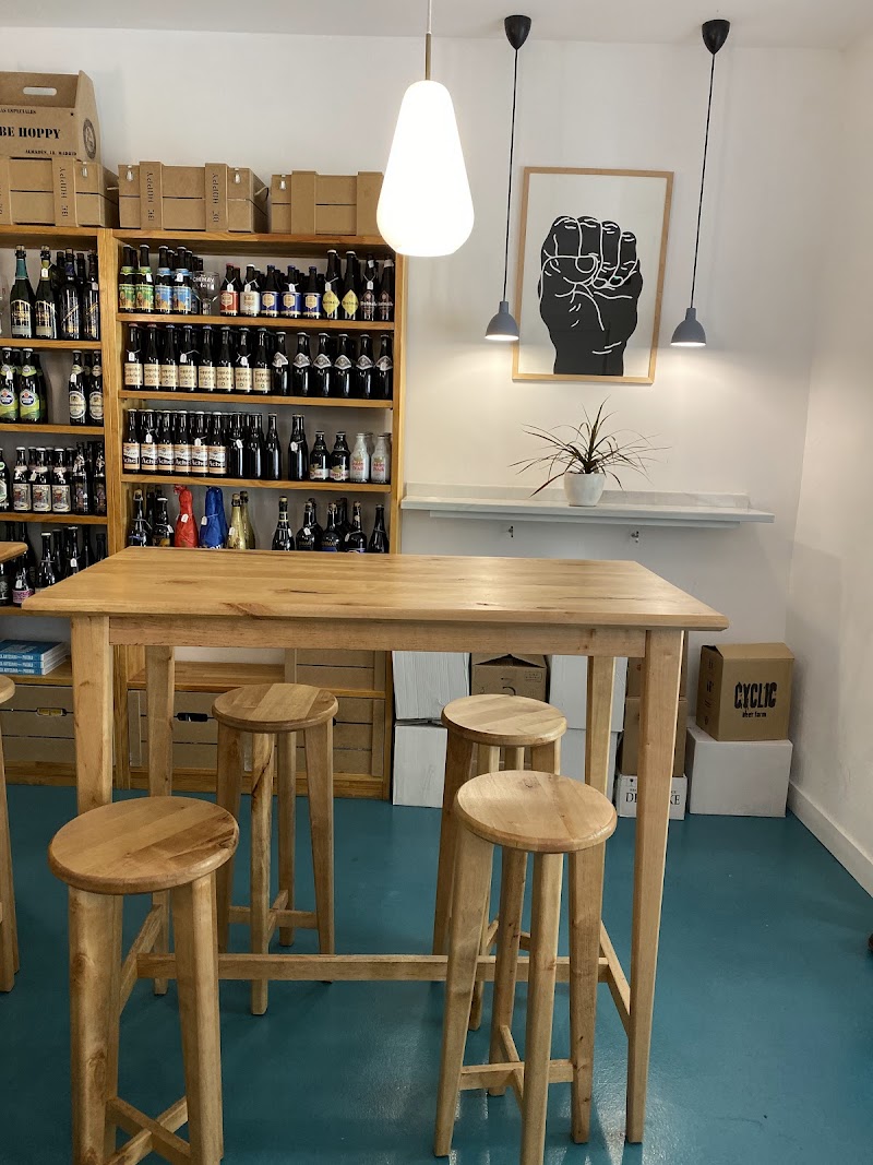 Que buena tienda de cervezas con la posibilidad de sentarse a degustar las cervezas que tienen en sus grifos, como cualquiera de las que están a la venta en sus neveras. Es un lugar sencillo con un corte algo minimalista donde predomina más la selección y oferta de birras que la degustación. De las cosas que más me gusta de su selección, es poder encontrar cervezas artezanales de formatos grandes como las botellas de 750ml.