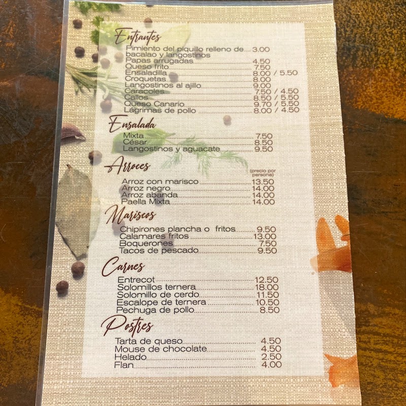 El camarero super amable, todos los entrantes muy ricos el queso frito,ensaladilla y papas con mojo. El arroz negro para dos muy abundante y delicioso.