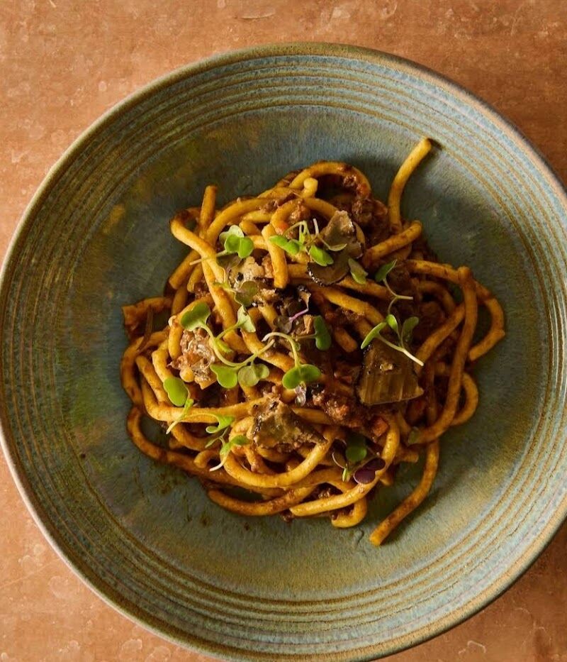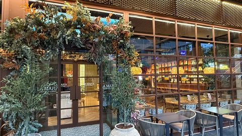 Decoración elegante y guiños a la estética de la mafia en cadena de restaurantes de cocina italo-mediterránea.