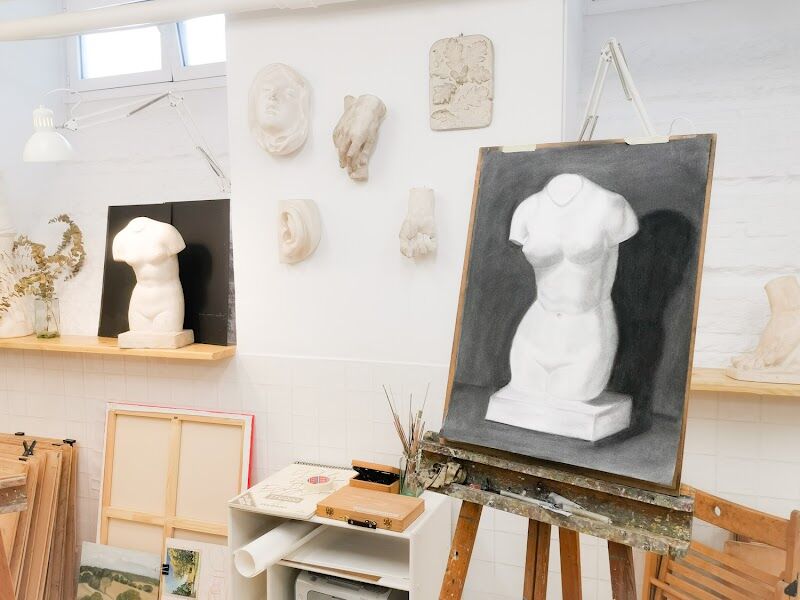 Escuela de arte en la que imparten clases de diversas técnicas de dibujo. Tienen clases continuadas y también ofrecen talleres puntuales. Disponen de bastantes horarios. El ambiente es muy agradable y está genial comunicada en plena plaza de Alonso Martínez de Madrid. Yo tuve de profesora de acuarela a Aleks y me pareció fantástica, hice un curso intensivo con ella y aprendí muchísimo.