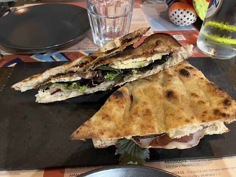 Lugar acogedor por Ciutat Vella . El ambiente es cálido, mesas anchas y bonita decoración típica de una pizzería italiana. Los Panzerotto estaban muy buenos, el de carbonara fue espectacular: guanciale en su punto y el toque de pecorino. Sin embargo, el rústico no tenía mucho sabor a pistacho. Las pizzas muy buenas y hechas al momento en su horno, que le da un toque especial. Los postres deliciosos, los que más nos gustaron fue la panna cotta de chocolate y el postre del día; un Maritozzi relleno de nata y espolvoreado con pistachos. Un lugar al que volver y seguir degustando más platos. Calidad/ precio está bien.