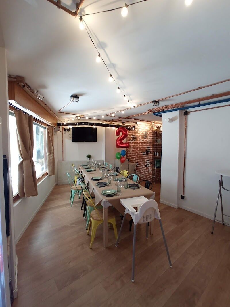 El local tiene todo lo necesario para hacer cualquier celebración. Mi hijo disfrutó mucho y sus amigos no querían comer por estar en el parque de bolas. Es un sitio muy bien decorado con todo detalle y acogedor, a parte de bien ubicado. Carlos es muy atento y amable. Muy recomendable.