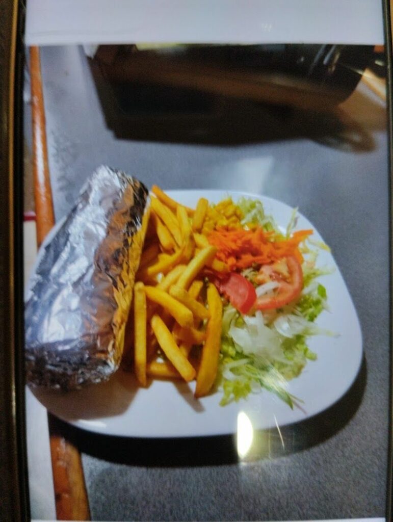 La comida muy buena y bastante cargado el kebab muy limpios y amables buen trato y buen servicio.