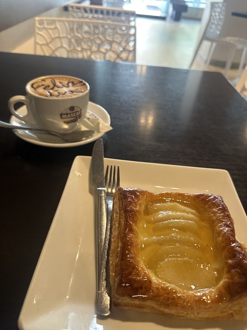 Por temas laborables estuve en ese pueblo y descubrí esta pastelería cafetería. La cafetería es muy bonita y tiene una amplía terraza fuera. Que maravilla de pasteles y el café el mejor de la zona sin duda . El servicio impecable y la camarera muy atenta y amable . Espero poder volver por la zona por trabajo, para poder volver a esta pastelería Muchas gracias