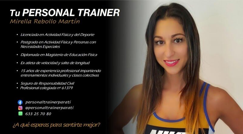 Llevo 2 años entrenando con Mirella y vamos a por el tercero. Entreno con ella dos días a la semana uno hacemos físico y cardio y el otro día pilates e hipopresívos y en verano cuando el tiempo lo permite hacemos Aquagym. Son entrenamientos muy completos y adaptados a tus necesidades. Mirella es muy profesional, se nota que controla mucho y sabe lo que hace en cada momento, pero la vez con un trato muy cercano. Recomiendo que conocais a Mirella y sus entrenamientos, no os arrepentiréis.