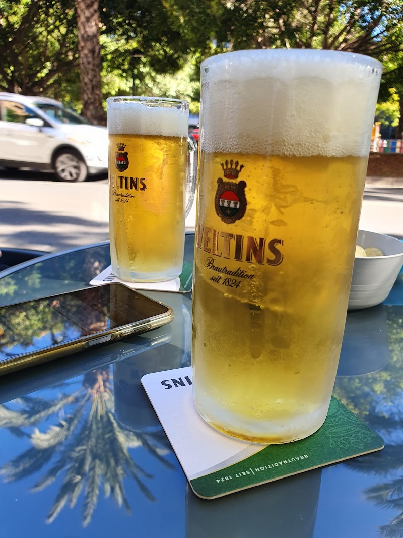 El bar está muy bien y los precios normales para este tipo de sitio. Las mesas en la terraza están un poco pegadas y la gente que fuma en las mesas casi te está fumando encima, pero bueno son las reglas del juego en la terraza de un bar y habrá que adaptarse uno o buscar otro sitio. Las chicas que atienden son muy amables y lo llevan super bien, a pesar de que la terraza estaba a reventar. No califico la comida simplemente porque no comí nada allí