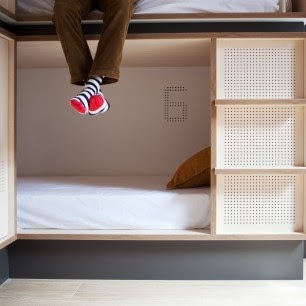 Albergue chic con bar retro y cocina compartida, dormitorios luminosos y habitaciones privadas con Wi-Fi.